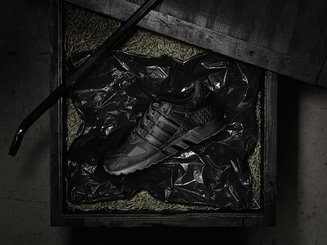 Update: Following a Black Friday release, the Pusha T x adidas EQT Guidance 93 ‘Black Market’ will release once again at additional retailers. This will take place on Friday, January 29th 2016. So far Overkill and Titolo have been confirmed. We will let you know if more retailers will have them.