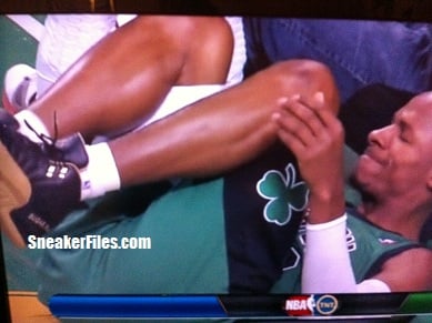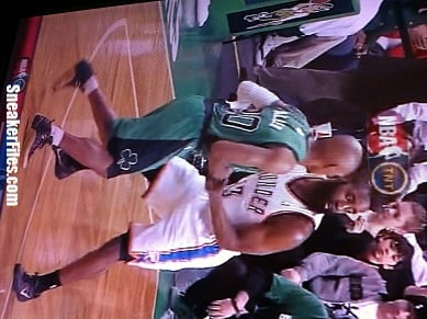 If you were watching last night’s NBA game between the Boston Celtics and Oklahoma Thunder, you might have noticed a sparkling Gold shoe on “Sugar Ray’s” feet. Last Night Ray Allen was wearing a PE Air Jordan XII in a Black/Metallic Gold like colorway dubbed the “MLK Day”. Stitched on the side heel was “Sugar Ray”. There is no word if these PE’s will be releasing but keep it locked on SneakerFiles for any future info.