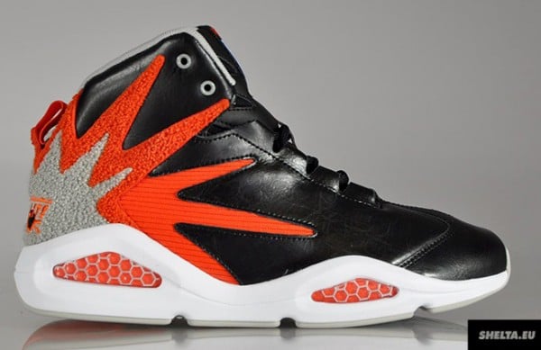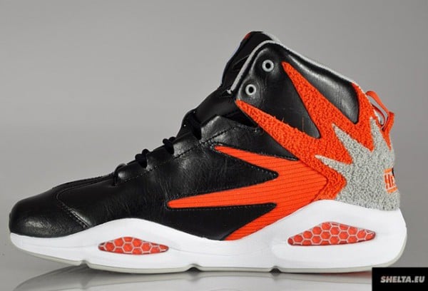 Included in the line up of new colorways is this Black and Blood Orange version. Sporting a smooth black leather upper, this classic model also features a back heel constructed of Chenille fabric and embroidered branding in grey and blood orange accents. This Reebok Blast also displays a white midsole and grey outsole for a complimentary finish.