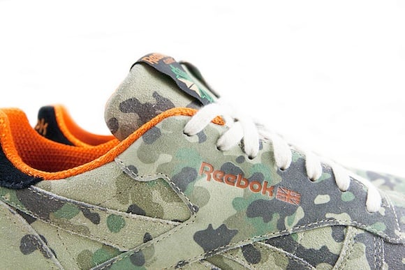 The Classic Leather is coated in the army based camo suede featuring a vivid green, tan, olive, and autumn green colors. What really makes this anniversary sneaker stand out is the total orange accents around the inner lining and Reebok logos. A great colorway to finish off the month.