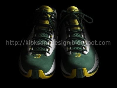 Also slated for release this year is Allen Iversonโs twelfth signature model, the aptly named Answer XII. The shoe received inspiration from A.I.โs two-sport past, as the Denver Nuggets guard was both an All-State point guard and All-State quarterback while growing up in Hampton, Virginia and playing for Bethel High. Hereโs a frontal first look at the Bethel-inspired XII thatโs toned up in a compelling blend of white/kelly green/gold. Via: KAD