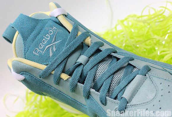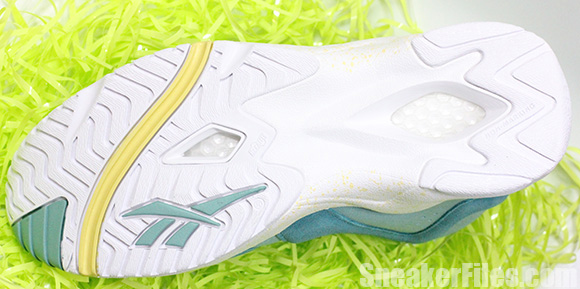 Taking one of Reebok’s classic silhouettes, the Kamikaze II then placing Jadeite and Utopic Teal throughout the uppers resemble the dying of Easter Eggs. Electrolyte resides on the liner but is also speckled on the white midsole.