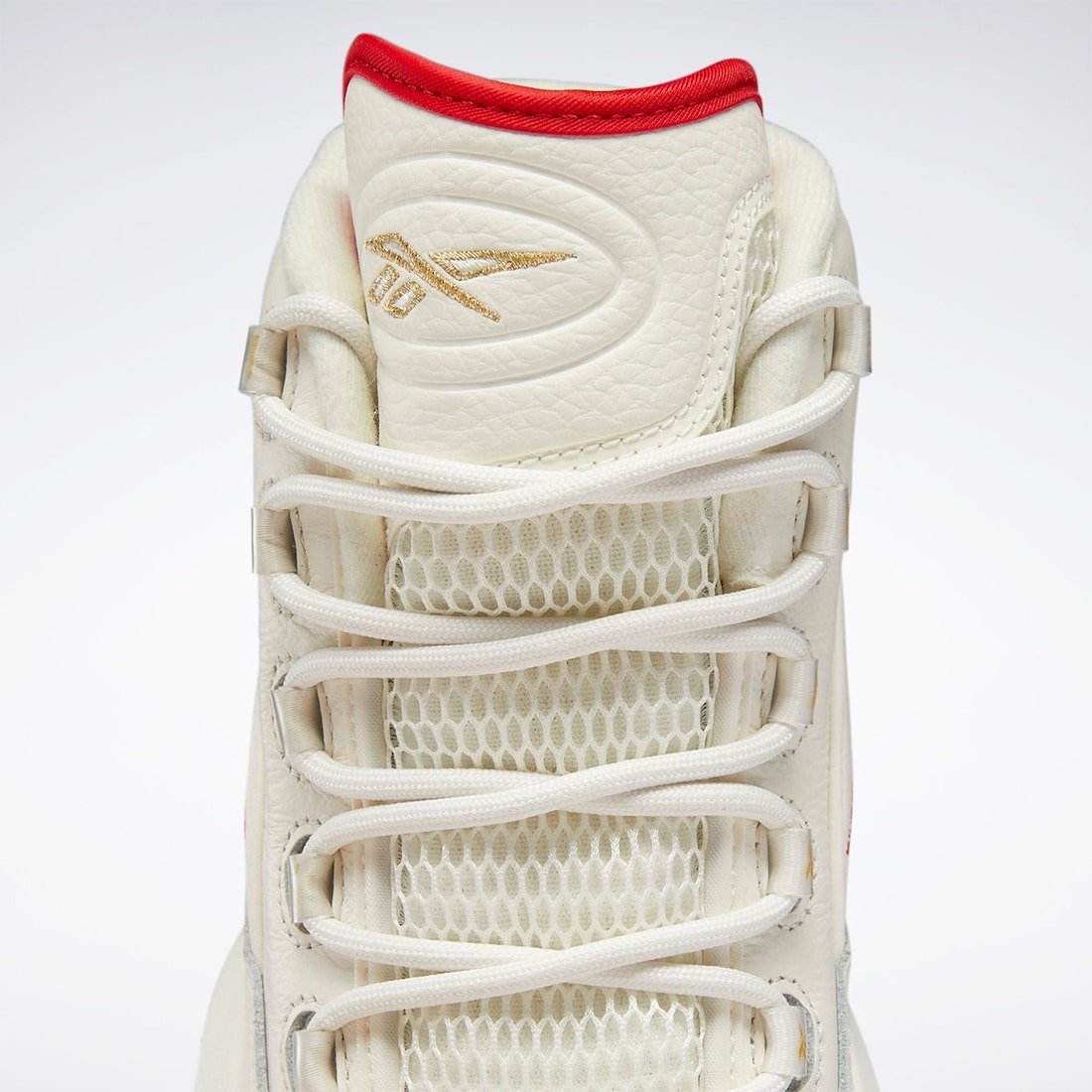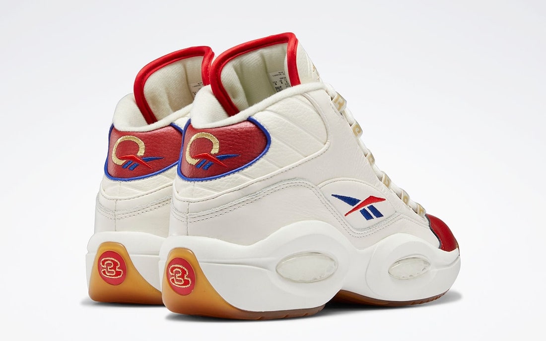Reebok will debut another Question Mid that represents Allen Iversonโs playing days for the 76erโs. The pair pays tribute to the Gold trimmed jerseys from the 1997-98 season.