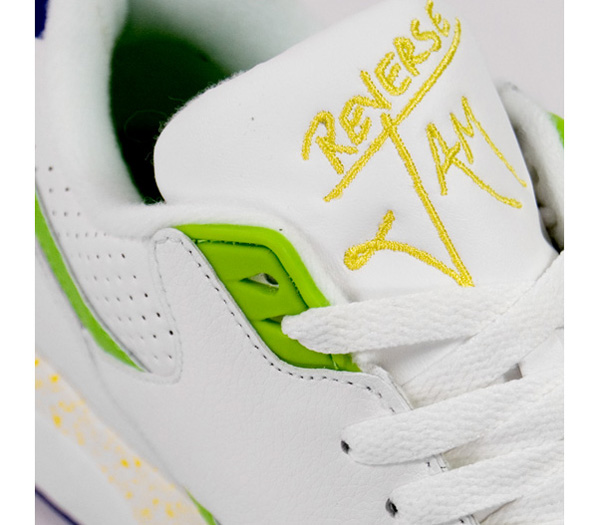 Although both the Mid and Low Reebok Reverse Jams pictured contain the same color mash up, each pair has different color placement. Both pairs are finished off with a dominate White upper and in cursive Reverse Jam. Available now at Overkill.
