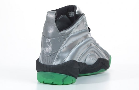 Originally pegged to be releasing sometime in September, the “Steel” version of the Reebok Shaqnosis has been bumped up to an August 28th release date. While the day does fall on a Wednesday, this pair of kicks will definitely shine bright on its mid-week release. Aside from sporting an eye catching shiny metallic 3M enhanced upper, this pair of kicks will also come fully equipped with an equally dope glow in the dark sole. Which Shaq’s movie Steel wasn’t exactly a box office smash, this pair of Shaqnosis serves as a rather tasteful tribute to The Diesels acting career. Continue reading after the jump to check out some fresh pics of this upcoming release and let us know if these could possibly find a way into your collections on the 28th.