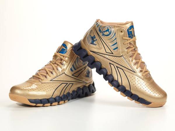 Jason Terry essentially designed it himself. He was at Reebok Headquarters back in August and sat down with some of our designers to create a special shoe to celebrate his NBA Championship. He wanted a bold gold upper to demand attention on the court, and obviously plays off the color of the Larry OโBrien trophy. After that, Dallas Mavericks colors were added to the shoe to work with the uniform on-court and an interpretation of the championship trophy was added with the JET logo to represent both his recent championship and infamous tattoo.