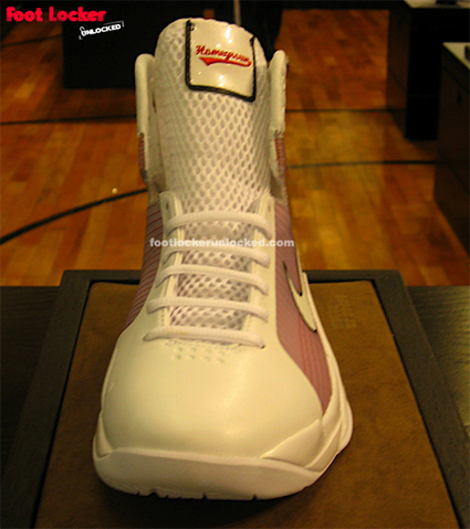 Though it only opened its doors earlier this week, Nike’s House of Hoops in Chicago has already made a name for itself as one of the nations’ leading Nike retailers. Earlier today, we showed you the Joe Johnson Jordan Jumpman Team Pro PE and the Ray Allen Jordan Jumpman Team Pro PE, which will both be Chicago HoH exclusives, and now we are happy to inform you that a pair of Larry Huges’ Nike Hyperdunk Supreme PE will drop tomorrow at Chicago’s House of Hoops. This pair of player exclusives is inspired by the Chicago Bulls’ home colorway of white and red. Alongside the white base and red flywire, this pair also features the word “Homegrown” written in cursive across the tongue to successfully seperate these player exclusives from all other Hyperdunks. These will be available tomorrow, November 14th, 2008, at the House of Hoops Chicago. Via Footlocker.!–more–>