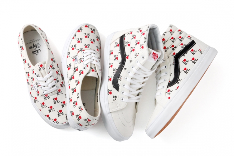 Highlighted by Milton Glaserโs โI Love NYโ graphic and the addition of a commemorative t-shirt ($28) and matching camp hat ($40), the DQM x Vans “I Love NY” collection is available today in limited quantities exclusively through The Vans DQM General.