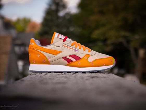 As we’ve learned that this Reebok Classic Leather takes inspiration from prison inmate uniforms with a orange colorway and arrows that denote government property, this release is also highlighted by premium leather and canvas combination uppers, icy outsoles, and an extra set of laces for those looking spice things up a bit.