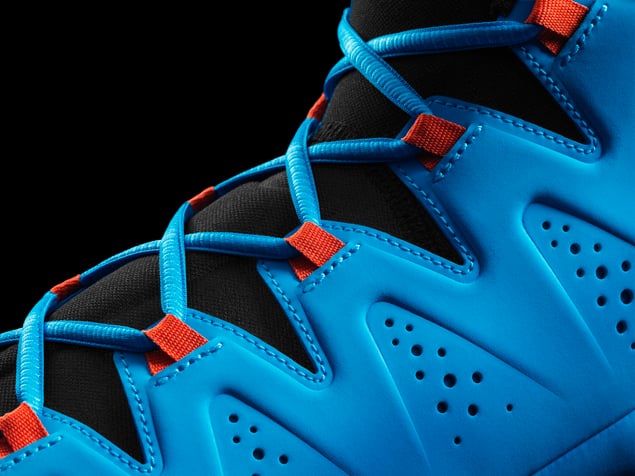 The Jordan Melo M10 “Dark Powder Blue/Team Orange-Black-White” embodies the evolution of Melo’s shoe with intricate detailing, technology, and an overall design that only Camemlo would approve of.