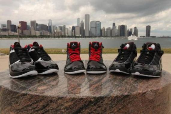 Each shoe features a splash of black patent and dashes of varsity red and white as accents. Personal nibbles from Jordanโs career โ high-scoring outings, MVP Awards and Championship Rings are embossed on each model.