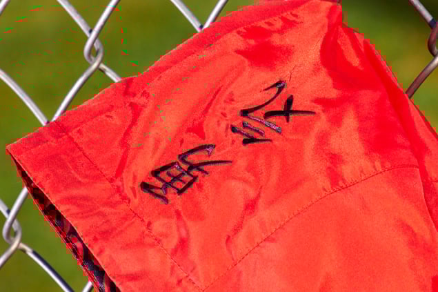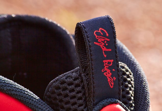 Designed in full by 14-year old Elijah Diggins, this limited edition Nike Air Foamposite One pays homage to Elijah’s favorite basketball player, LeBron James. Set up in an official challenge red and black color combination, details include a 3D graphic upper, a custom smiley-face logo at each back heel, Japanese characters which symbolize courage, two-toned outsoles, a chain-link graphic insoles, and Elijahโs signature which is embroidered along each heel tab.