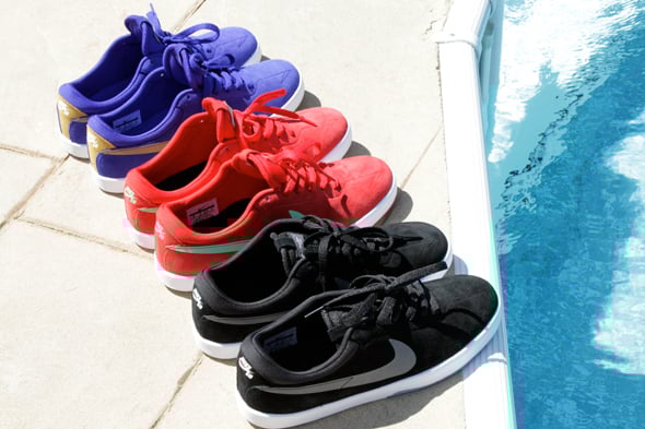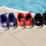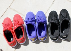 When we previewed the Nike SB Zoom Koston One awhile back, we took a look at the Kobe Inspired colorways that are set to release sometime this summer. Tomorrow however, the Zoom Koston One will be available at select stores in 3 simple, yet fresh colorways to kick off the line up. Stamping it’s mark in Nike SB on Saturday will be in Purple/Gold, Red/Green and Black/Grey. Check these out at your local Nike SB retailers or grab them online.