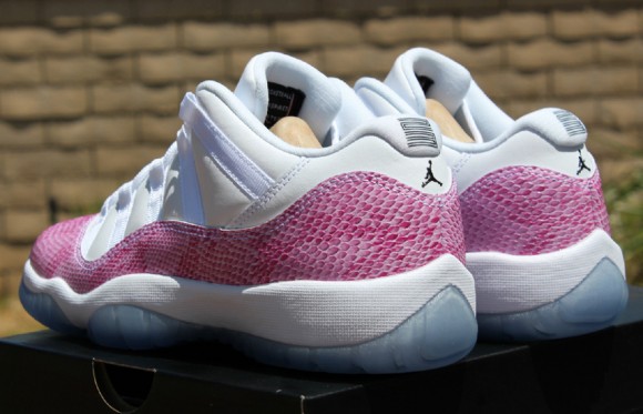 Minor changes aside, the “Pink Snakeskin” Air Jordan XI Low GS is primed and ready to do some retail damage tomorrow. Keep reading after the jump to get on last look at them and let us know if these are a bonafide must have.