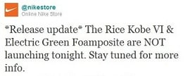 The Electric Green Foamposite Pro and Rice ZKVI will NOT drop tonight on NikeStore. Only NikeStore is effected so if you planned on copping from another retailer you’re still good to go.