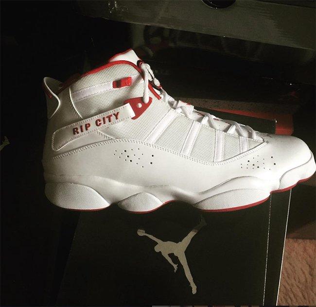 Featured are three different models that Rip Hamilton was given by Jordan Brand to wear on the court. Those models are the Air Jordan 12, Jordan 6 Rings and the Air Jordan XX3. Each comes in a Home theme while using predominate White along with Red accents. All three pairs will have his nickname of Rip City, while two are done in Blue and one in Red.