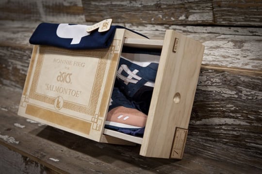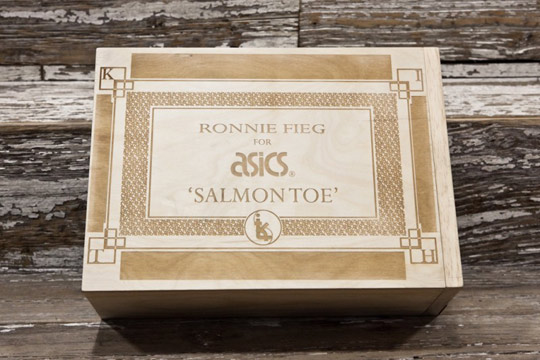 The collaboration will feature 40 runs of limited edition wooden boxes, that will include KITH x Asics “Salmon Toe” tee and wooden hog tags.