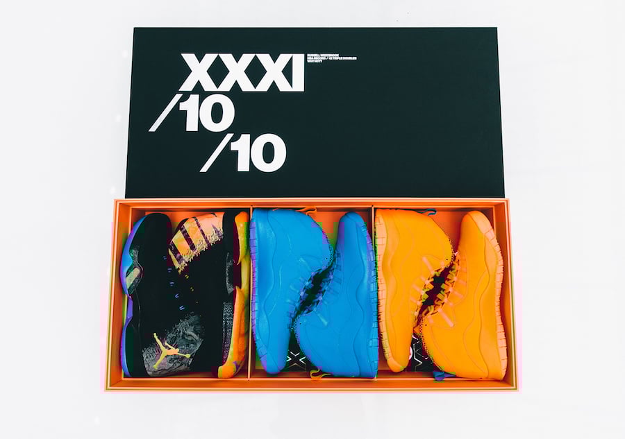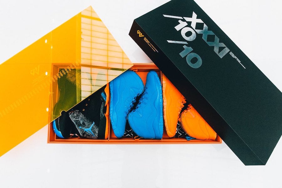 On Sunday Russell Westbrook celebrated his 29th birthday by wearing the Air Jordan 10 MVP Orange PE from the โTriple Doubleโ Pack from Jordan Brand which was given to him for winning the 2017 NBA MVP award. Also in the pack is the Air Jordan XXX1 and a Blue Air Jordan 10.