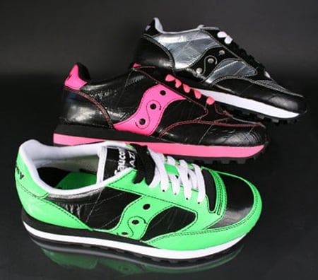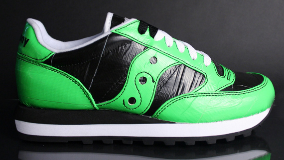 Duct tape can be used to fix anything, but can it help hold together the Saucony brand? This collection promises so with the Saucony Originals Jazz Duct Tape Collection, which consists of four Jazz sneakers in loud green/black, pink neon/black, grey/black, and grey/black/red. Each shoe uses leather in its dominant color and is contrasted by black duct tape panels, except for the grey/black and grey/black/red colorways, which feature silver duct tape panels. Saucony Jazz is stitched on the tongue and all four shoes have black soles to contrast their white and pink midsoles. This collection will only be released at select Nordstroms’ department stores.