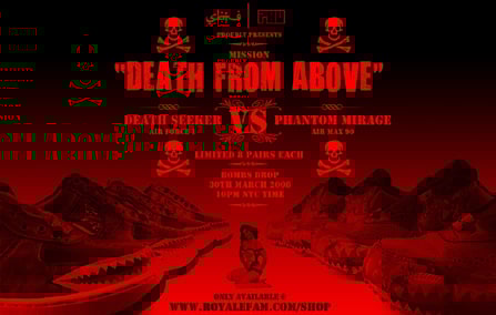Renowned sneaker customizer SBTG will be releasing his latest two part package including the Nike Air Max 90 and Air Force 1, entitled “Death from Above” in which the Death Seeker Air Force 1 and Phantom Mirage are inspired by fighter jets and airborne squadrons.