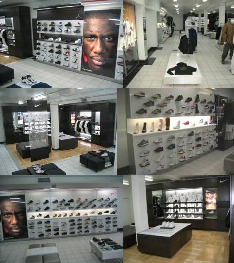 Over a month ago, Sneakerfiles took a trip to San Francisco to show you the biggest Shiekh Shoes to date, which if you remember the store is huge and beautifully designed. On that post we did mention that you can expect more from the Shiekh Shoes San Francisco store location, and we will now show you one big update. At the back of the store Shiekh has added a Nike section which is a whole section dedicated to Nike’s. If you look at the back wall, there is a mirage of the Original Six Air Force 1 team members. Also many banners and Nike signs throughout the display area, and not to mention the many new styles of Nike’s to purchase. This is something you must stop by and check out. Click more to see all the images.
