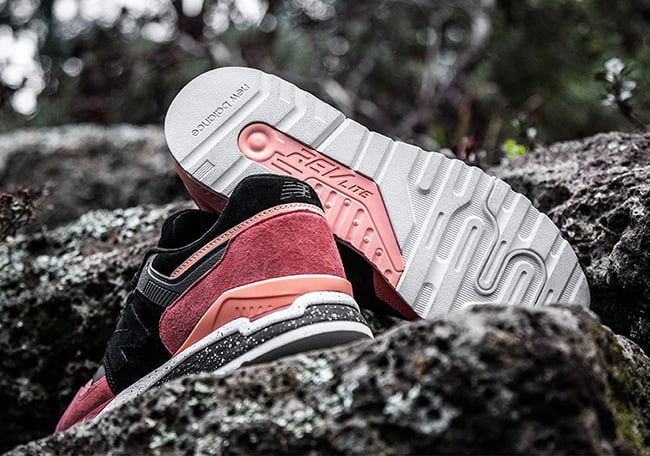 This modified version of the New Balance 997 now known as the 997.5 by Sneaker Freaker features a carved terracotta suede which has been boldly embellished with salt and pepper speckle, apricot pops, 3M charcoal stripes and the blackest suede in the animal kingdom. Triangular forefoot fangs add carnivorous bite, while padded tongues are an elegant enhancement to the new model. Stepping up our packaging game, the global release arrives in a two-piece black box with a heavy-duty UV gloss.