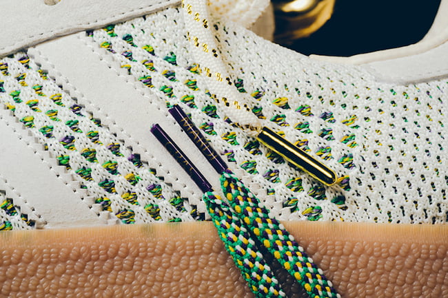This adidas Gazelle by Sneaker Politics is inspired by the King of Carnival, leader of one of the oldest and influential Mardi Gras organization’s today. Constructed with Primeknit across the uppers, hints of multiple colors represent something different: Purple for justice, Green for faith, and Gold for power.
