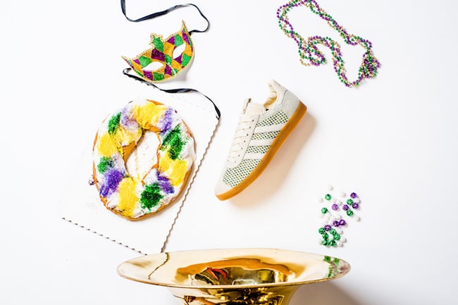 Sneaker Politics and adidas Consortium are collaborating on the adidas Gazelle Primeknit inspired by Mardi Gras for their new store opening in New Orleans.