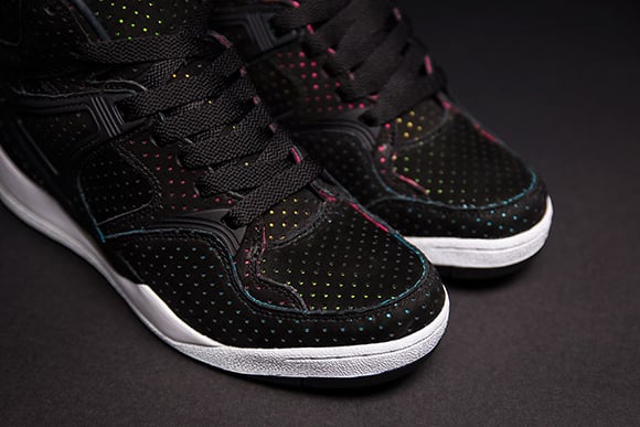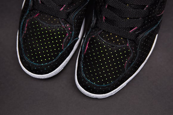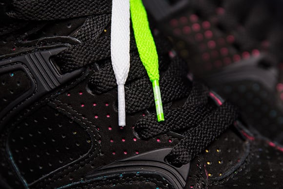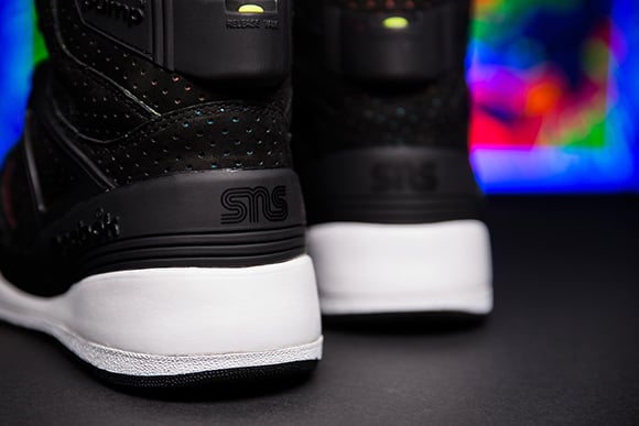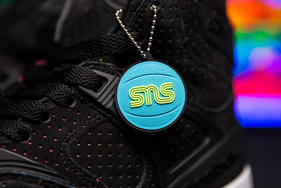 Known as ‘Blacklights’ and is inspired by the black light posters. This Reebok The Pump features a black perforated suede upper for a velvet like finish, while under you can see the neon colors seeping through. SNS branding is seen on the heel while they went to the artist Mander (Martin Ander) to design the insole and a poster for the release. They will also come with black, white and neon green laces.