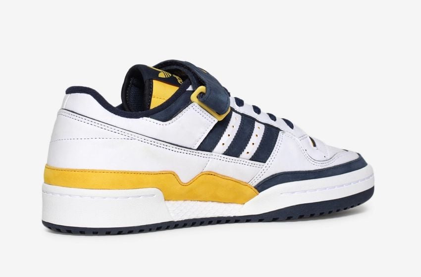 This adidas Forum Low comes dressed in White, Navy, and Maize, which has a Michigan color theme. Highlighted with a White tear-away upper that unveils the Detroit skyline. Next, โ313โ is embroidered on the lateral heel and the lace dubraes. โRaised From Concreteโ lands on the insoles, and a hidden message lands under the cross-strap that reads โI Am Detroit.โ Finishing the look is a White midsole and a Navy rubber outsole.