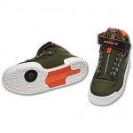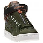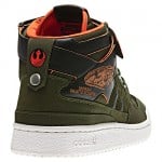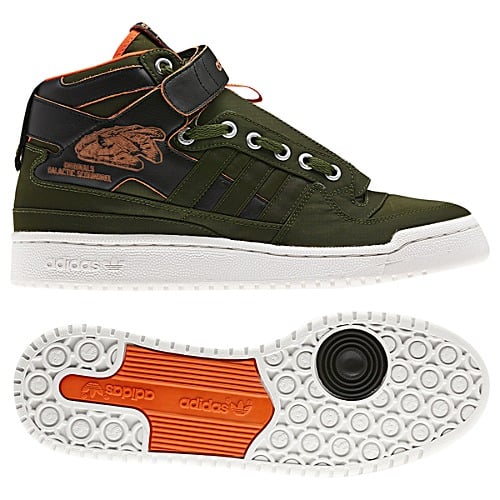 This Forum Mid features synthetic uppers in a predominant Olive Green, with black and orange accents. The lacing supports are on full with an upper hook and loop ankle strap and zipper cover to accompany the laces. The Star Wars inspired details run all over the show with the Rebel Alliance logo on the heel tab,ย Millenniumย Falcon on the lateral upper and Han Solo’s profile on the tongue.