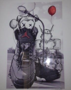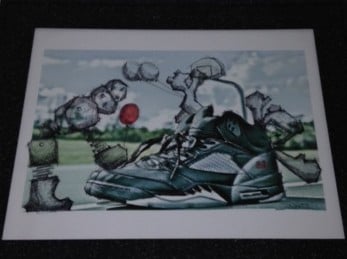 The โStinky Sneakersโ gallery showcases five awesome images of the AJ5 mixed with a little graffiti, oil paint, spray paint and artistic flare. Each image comes with a custom Black Top frame to bring it all together, something that sneaker enthusiasts and hoop players alike with appreciate.