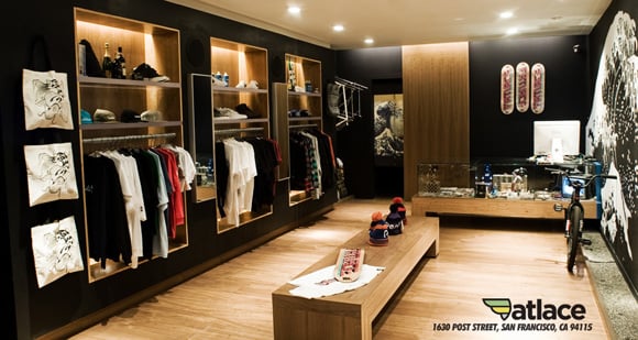 Fatlace San Francisco, located at 1630 Post Street x Laguna, San Francisco, CA 94115 also known as Japantown, mainly carries their own line of clothing. But they do have some sneakers, like their collaborations, Nike and a few more.