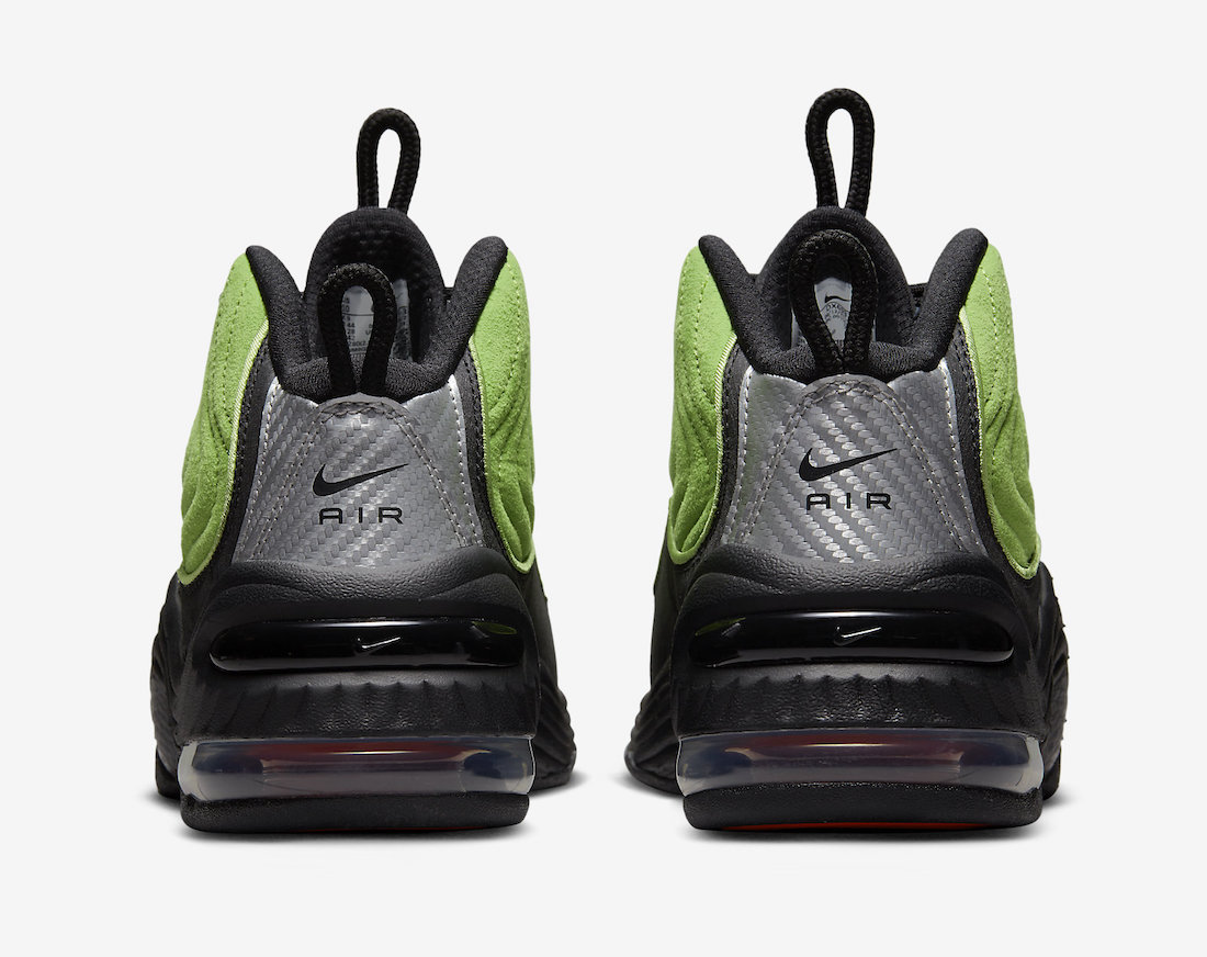 Update (11/16): We now have a first look at the Stussy x Nike Air Max Penny 2 in Green and Black. This pair features suede on the upper and Silver carbon fiber on the heels. It also features Red within the Air Max unit and hinted on the outsole. Each pair comes with three sets of laces and special packaging.