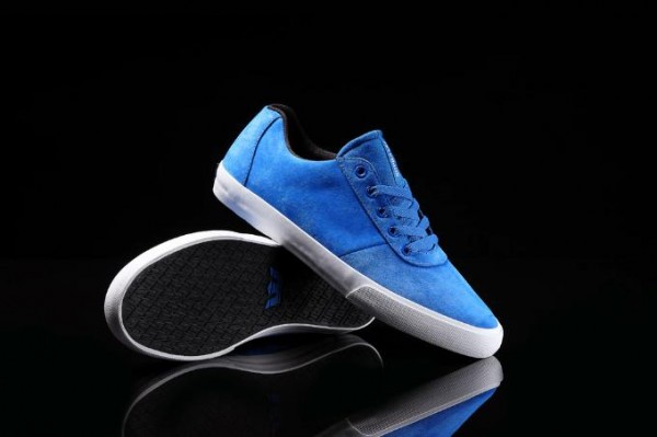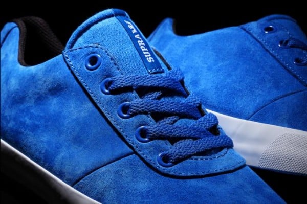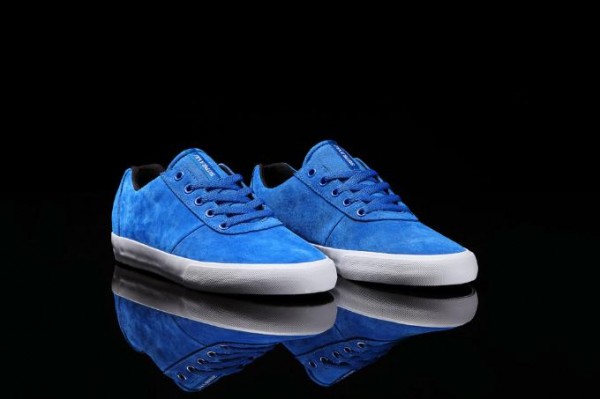 Featuring a low-top upper of royal blue suede alongside matching laces and a canvas tongue, the kicks come lined in black with a vulcanized black rubber sole, white tongue branding and contrasting white rubber foxing.