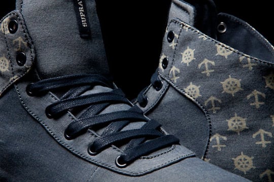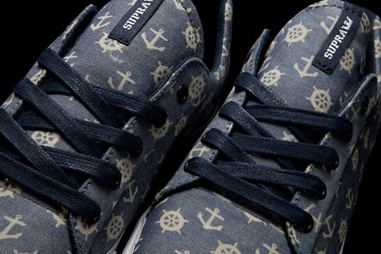 This pack consists of 3 sneakers – the Supra Cuttler, Supra Assault and the Supra Cuban. All 3 feature similar designs with blue chambray uppers with ‘helm and anchor’ patterned panels, white midsole and Navy Blue waxed laces.