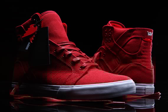 Last month we got a first look at the Supra Skytop set for a Valentine’s Day 2010 release. Now, we have word that the Supra Skytop Heartbreaker 413 Edition will release exclusively at the Factory413 store at noon PST this Saturday, February 13th, followed by an online release at 3pm PST. The Skytop feautres a full red canvas upper, white midsole, and matching red outsole to get you in the romantic spirit. A fitting heartbreaker hangtag is added to the shoe to complete the theme. These heartbreakers will retail for $120 each, and will only be sold in a quantity of 1000, so be sure to snag ’em quickly!