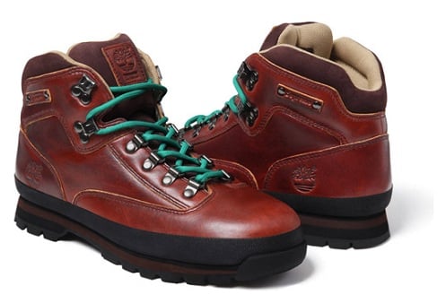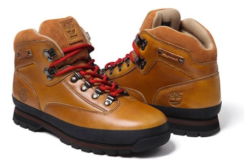 A little over two months ago we got an early look at the upcoming collection of Euro Hiker colorways designed by the collaborative efforts of Timberland and the Supreme skate shop. Now that December is here, we can forward to our followers some concrete release information. Designed in dark red, black, tan and blue monotone leather uppers, these collection is set to release from in-store Supreme locations in London, Los Angeles and New York. A later release date of December 10th has been set for Japanese stores.