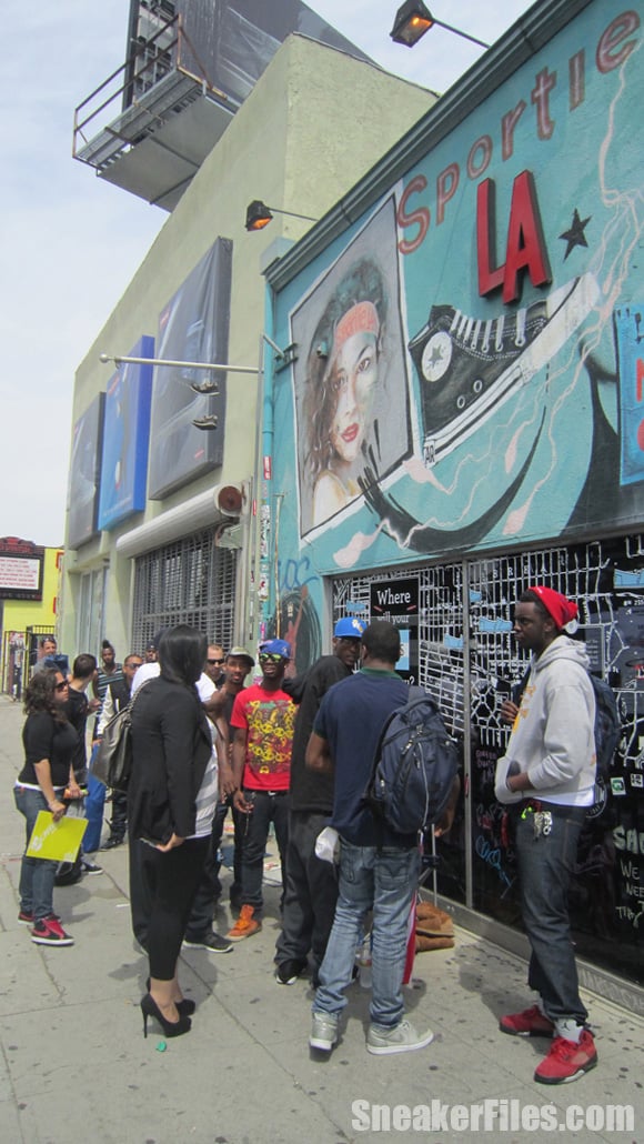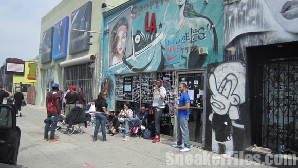 The line started at noon the day before the release and at its peak, there were as many as 50 people in line waiting, hoping to score a pair of the limited edition kicks.