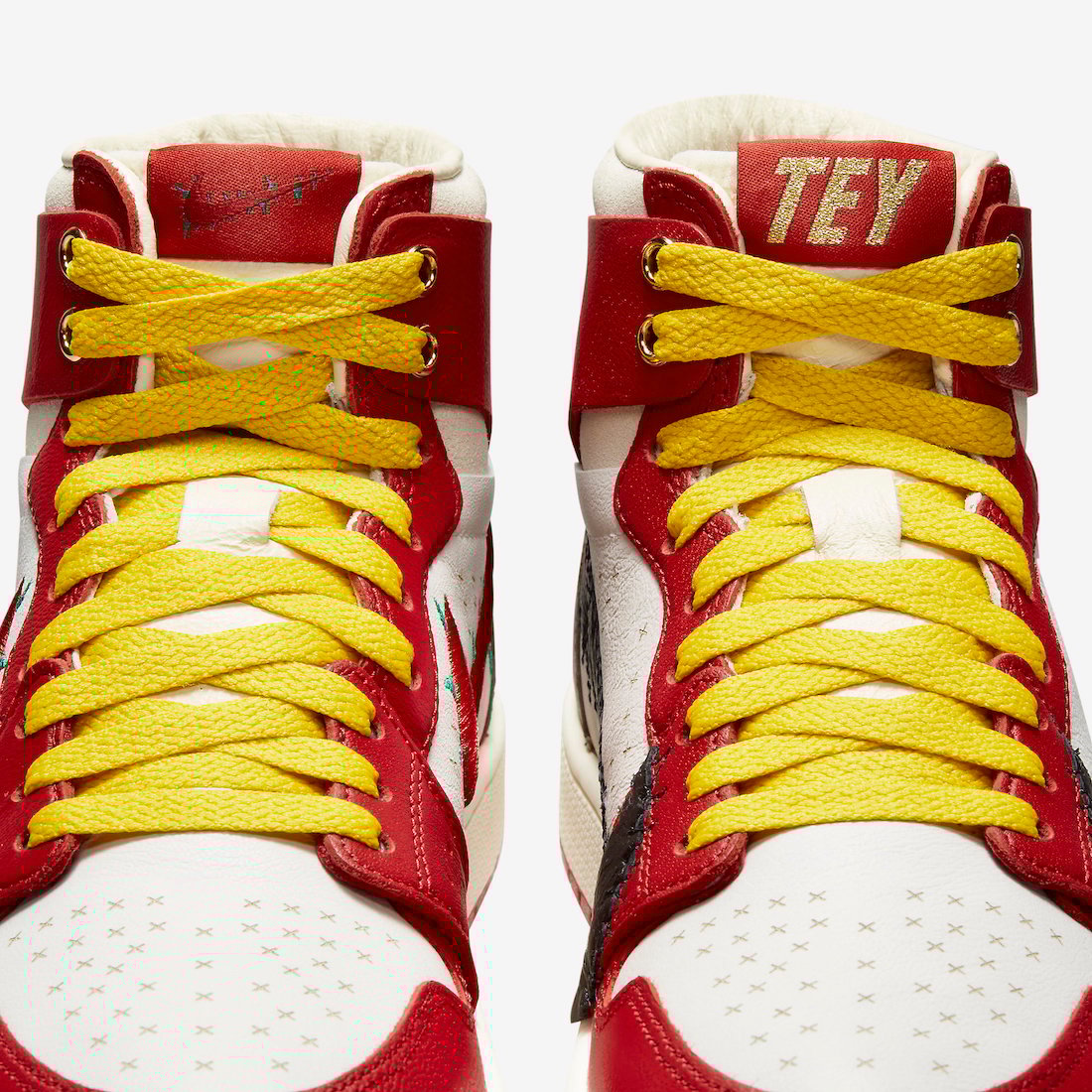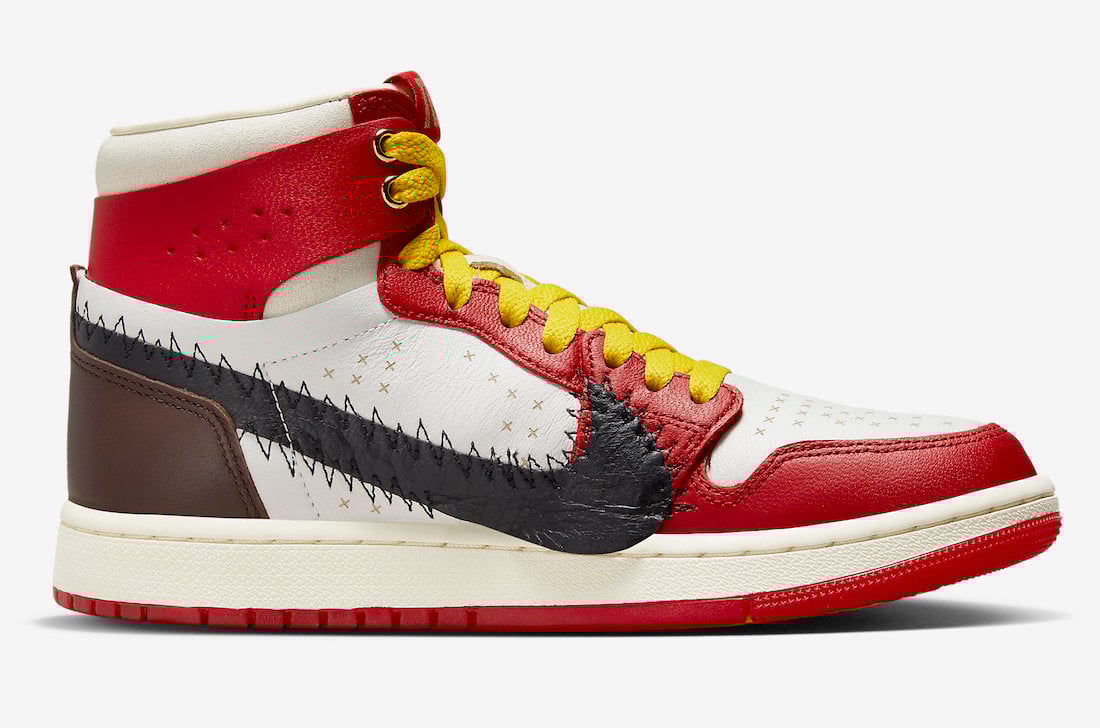This Air Jordan 1 Zoom CMFT 2 by Taylor is known as โA Rose From Harlem,โ which references her 2018 record, Rose in Harlem. Dressed in a Gym Red, Black, Summit White, Earth, and Coconut Milk color combination. On the left shoe, we have a large Black Swoosh with exposed stitching that extends onto the midsole. The left shoe comes with the traditional embroidered Swoosh in Red with Green thorns. โA Rose From Harlemโ is printed on the inside of the ankle flaps, and โTEYโ branding adorns the left tongue. Other details include a unique graphic on the insoles, and it will also come with special packaging.