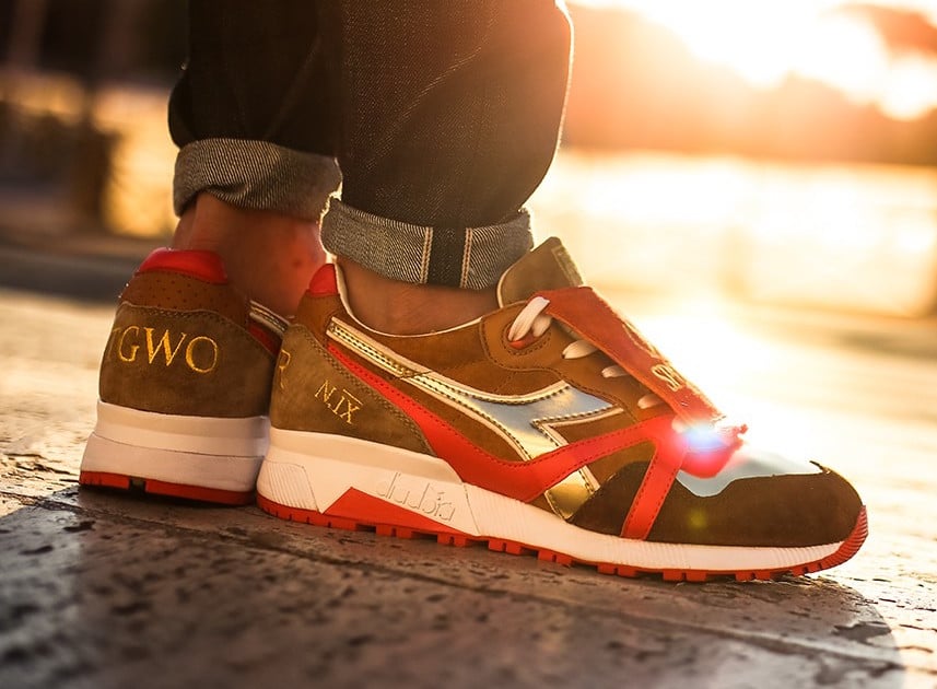Looking closer at this premium Diadora N9000, they are constructed with a mixture of kangaroo nappa leather, picasso goat leather and nubuck leather. Following each pair will come with four different laces. One will feature Gold lace tips which has TGWO branding.