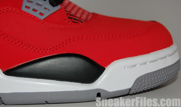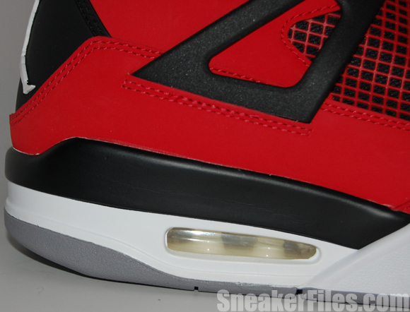What is hard to ignore is the full red nubuck uppers. Seen on the Air Jordan 5, this is where the Toro Red nickname came from. The Jordan 4 holds the same colorway except for white on the sole and midsole area.