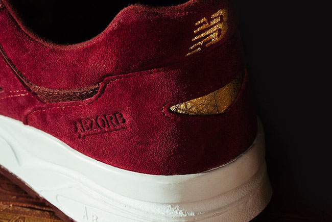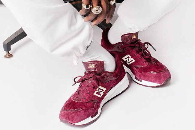 Looking closer at this New Balance 1600 in connection with UBIQ, they feature Burgundy suede through the uppers for a premium feel while Gold accents are seen throughout. Other details includes a tribute to Charles IIโs revamped St. Edwardโs Crown along with the insole and hangtag featuring an Orb and Scepter.