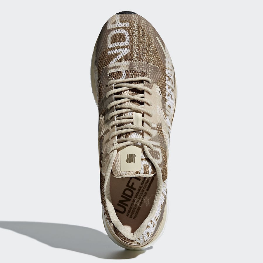 First up is the adidas Ultra Boost which features Black on the Primeknit upper with โUNDFTDโ in White running across it. As for the adidas AdiZero Adios 3, one features Black with Tan accents while the other is highlighted in Desert Camouflage which also has Undefeated branding on the upper.