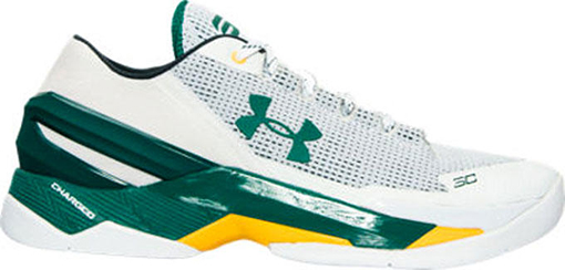 The two Under Armour Curry 2 Low releases represent the Oakland Aโs and San Fransisco Giants. The A’s pair will feature a White base along with Green detailing and hints of Yellow. The Giants pair will also represent the team by color use featuring a Black base with Orange hinted throughout and a bit of White.