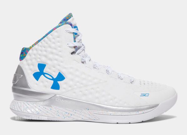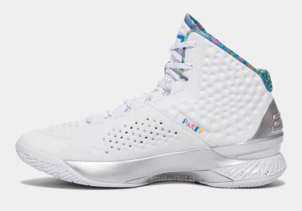 The Under Armour Curry One is being called ‘Splash Party’, and is fitting because that’s what happens every time Curry gets on the court. Featuring an all white base with blue highlighting the tongue, the liner features confetti print.