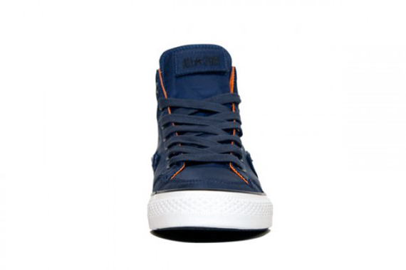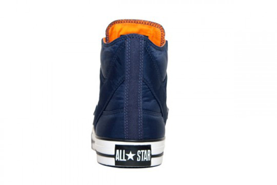 It’s been a year since UNDFTD first teamed up with Converse to create the first Converse Poorman’s Weapon. For the third installation, the two brands have come up with a navy colorway for the UNDFTD x Converse Poorman’s Weapon. The shoe once again utilizes a full nylon bomber jacket material upper, complete with orange contrast lining and removable velcro tags. This time, though, the shoe comes with a special matching flight jacket and helmet bag to really enforce the theme. You can expect these flyers to come out January 29th worldwide.