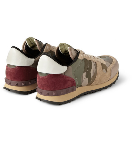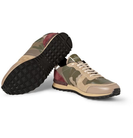 Creating a more rich toned silhouette this Spring, Valentino brings forth a camouflage low top sneaker. The Valentino Panelled Leather and Suede Camouflage Sneakers are camo based with khaki and maroon suede panels, on a khaki/ black sole. Going against the rest of bright, clean colorways from other designer , like the Our Legacy Runner III, Valentino is goes the opposite with this latest shoe. Complete with a white heel tab, you can head over to Mr. Porter if you want to buy you pair of these babies.