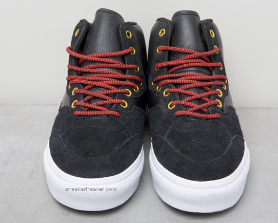 To get more in touch with Earth-friendly activities, Vans embarked upon a hike to discover a new model for their Spring 2010 collection. To go along with the Vans Mountain Edition, the Vans Buffalo Boot LX, which we first heard about this past August, makes an appearance to our screens. The Buffalo Boot, in this black colorway, features a black leather and suede upper and a pair of red hiking laces. The Vans Buffalo Boot logo is embossed on the leather at the ankle, while the shoe is finished off with a white midsole. You can expect to see this Vans at your local Vans retailer this in March or April 2010.