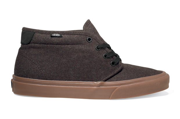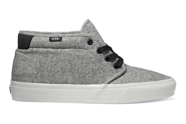 This California Wool Pack features the Vans Chukka, Chukka Boot 69 and the Pearcoat. All the sneakers sport, of course, wool in a combination of colors and styles with leather sockliners, rubber midsoles and waxed laces.